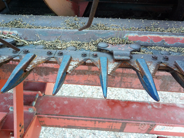 Mietitrebbia New Holland 3550 AL, completa di barra grano 480 e carrello porta barra, trincia. Aria condizionata. Seconda ventilazione e brillatore. Leva/cloche con pulsantiera comandi barra elettro idraulici. Perfettamente funzionante, pronta all' uso. Pompa idrostatica, riduttori, cinte, distributore valvole revisionati di recente. Compressore condizionatore nuovo. Lama taglio nuova con tagliole imbullonate.