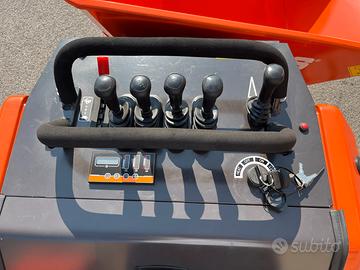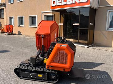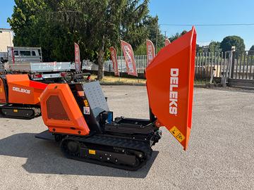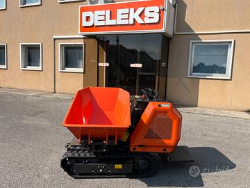 DELEKS® M8000R-KUBOTA Minidumper cingolato autocaricante, benna con scarico trilaterale su 180° con sollevamento e rotazione idraulici, valvola di blocco su rotazione, trasmissione idrostatica, pedana operatore, motore Kubota, avviamento elettrico.