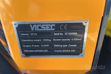 Vendo mini escavatore 1000kg dieci quintali modello vicsec 13 marca americana.