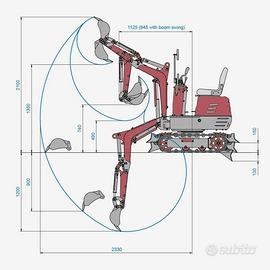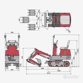 Vendo miniescavatore AMA da 600 kg, compatto e versatile, ideale per lavori in spazi ristretti, giardinaggio, piccoli scavi e manutenzioni.