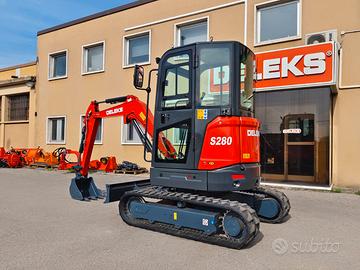 Miniescavatore DELEKS S280C - Motore Yanmar 3TNV80F a 3 cilindri. PANORAMICAPer lavori di costruzione, giardinaggio o servizi di pubblica utilità, l'S280C offre una potenza di scavo eccezionale e un controllo preciso con il suo avanzato sistema idraulico.Progettato per affrontare lavori su diverse tipologie di terreno, l'S280C eccelle nei progetti di piccole e medie dimensioni in cui precisione e manovrabilità sono essenziali grazie anche al suo design girosagoma.VANTAGGIForza di scavo della benna di 24 kN e forza di scavo del braccio di 14.8 kN.Motore Yanmar 3TNV80F diesel che eroga 14.6 kW a 2400 giri/min, con basse emissioni e un'eccellente efficienza nei consumi.Girosagoma Sistema idraulico con pompa a pistoni a cilindrata variabile consente una portata idraulica massima di 87 litri al minuto ed un controllo sensibile al carico che funziona ad alta pressione di sistema, garantendo un'efficienza eccezionale, nonché azioni fluide e sincronizzate. Garanzia per macchine professionali di 1 anno.Dichiarazione di conformità ItalianaPrezzo 21200 Eur + Iva.Servizio ricambistica da lunedì a venerdì.Con corriere in 48-72H.Consegna con trasportatore in tutta Italia su richiesta.Cod. art: S280CPer informazioni:DELEKS MACCHINE AGRICOLEVia Industriale, 2325028 - Verolanuova (BS)Tel: 0 3 0 6 5 8 5 7 2 5Whatsapp: 3 2 7 0 2 6 8 4 8 5SU RICHIESTA INVIAMO L'OFFERTA PER EMAIL.