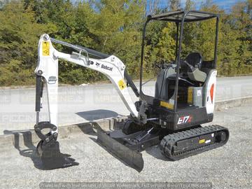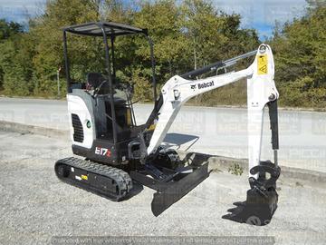 Miniescavatore Bobcat E17Z, anno 2020, 960 ore di lavoro, peso 1700 kg, motore Kubota 3 cil. 13 hp, carro allargabile, lama, impianto martello, trasmissione idrostatica, n. 02 benne da scavo 300-400 mm.IL PREZZO INDICATO E' IVA ESCLUSA.