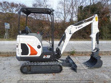 Miniescavatore Bobcat E19, anno 2023, 406 ore di lavoro, peso 1900 kg, motore Kubota 3 cil. 14 hp, carro allargabile, lama, impianto martello, trasmissione idrostatica, n. 02 benne da scavo 300-600 mm, benna pulizia fossi 1200 mm, attacco rapido anteriore meccanico Cangini CR30.IL PREZZO INDICATO E' IVAESCLUSA.