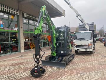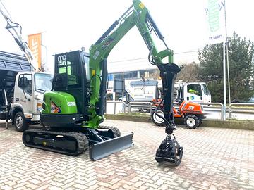 MiniEscavatore GIOR 37 Evo.5 Cabinato completo di Pinza Legna & Rotore - Dotato di Prolunga Braccio metri 1 - Made in Italy - Cabina con Aria Condizionata - Motore YANMAR 3TNV88F - 3 Cilindri 1.642cc - Impianto Idraulico & Pompe NACHI Made in Japan - Braccio Allungato & Contrappeso Posteriore Integrato - Attacco Martello con Innesti Rapidi - Controlli Totalmente Idraulici - Peso Operativo 3,7 Ton - Larghezza Esterna cm 155 - Completo di Attacco Rapido con Benna Scavo Dentata cm 80 & Benna Scavo Dentata cm 40 - Doppia Velocità di Trasferimento Lente/Veloci - Vetro Anteriore Apribile con Scorrimento Verticale - Sedile Molleggiato - AutoRadio Integrata - Monitor con Display Digitale & Gestione Elettronica Profondità Scavo - Doppi Fari LED su Braccio e su Cabina - Prezzo in Offerta - Possibilità Installazione Kit Industria 4.0 per Accedere alle Agevolazioni Recupero Credito di Imposta sui Contributi del 20% (più 10% Contributo Legge Sabatini) - Richiedi Tranquillamente il Tuo Preventivo - Possibilità Pagament0 Mezzi & Prodotti in Massimo 120 Mesi Fino a 50.000 Euro con Delibera in Giornata (Interamente Online) in Tutta Europa - Super Offertissima in Pronta Consegna -