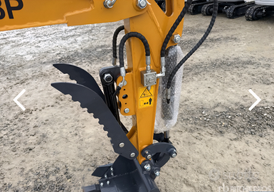 È dotato di braccio oscillante, impianto idraulico ausiliario, lama apripista, cingoli in gomma e benna da scavo.