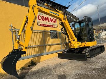 MINI ESCAVATORE KOMATSU PC 55 MR3 GIROSAGOMA 2015, ANNO 2015, peso Kg 5400, cabina chiusa ribaltabile come gli autocarri, completa di aria condizionata e riscaldamento, motore yanmar 4 cilindri diesel, pompa a portata variabile, doppia velocità di traslazione, cingoli in gomma, impianto martello, completa di attacco rapido idraulico cangini benne, braccio lungo, macchina pronta per il lavoro. Completa di certificato ce manuale uso e manutenzione. Per maggiori infromazioni telefonare allo COMAGI s.r.l.