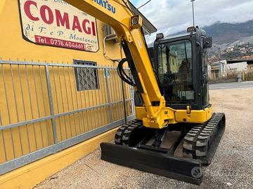 MINI ESCAVATORE KOMATSU PC 55 MR3 GIROSAGOMA 2015, ANNO 2015, peso Kg 5400, cabina chiusa ribaltabile come gli autocarri, completa di aria condizionata e riscaldamento, motore yanmar 4 cilindri diesel, pompa a portata variabile, doppia velocità di traslazione, cingoli in gomma, impianto martello, completa di attacco rapido idraulico cangini benne, braccio lungo, macchina pronta per il lavoro. Completa di certificato ce manuale uso e manutenzione. Per maggiori infromazioni telefonare allo COMAGI s.r.l.