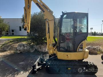 Mini escavatore cingolato KOMATSU PC38MR-5 NUOVO DI FABBRICA peso kg 3850 larghezza mm 1740 profondità di scavo max mm 3455, avambraccio lungo mm 1720, cingoli in gomma, NUOVA cabina chiusa riscaldata, Videocamera posteriore, Tendina parasole, Sedile DELUX, fari da lavoro a LED, lama reinterro, impianti ausiliari per martello e pinza, sistema satellitare, occhione per sollevamento, valvole anti-caduta su cilindri, modalità di lavoro sollevamento, auto-decelleratore, auto-spegnimento motore per inattività, interruttore generale d'emergenza, attacco rapido cangini, benna da scavo e da carico, manuale uso e manutenzione, certificato ce, dotazione d'uso e garanzia 12 mesi