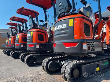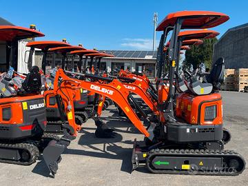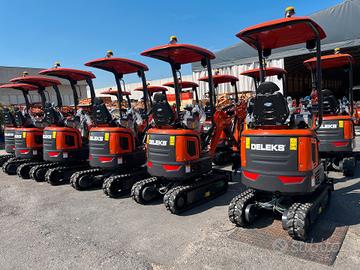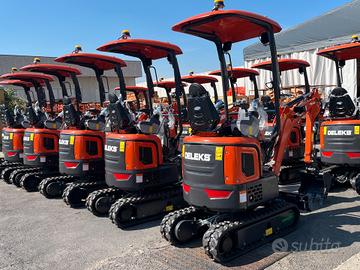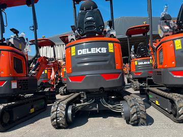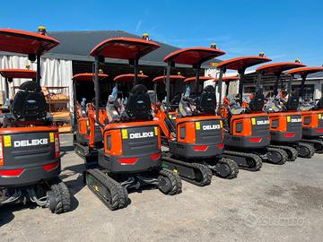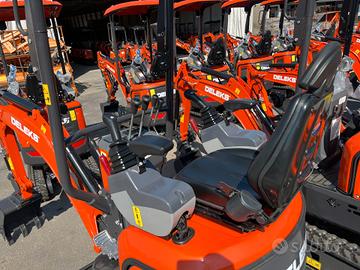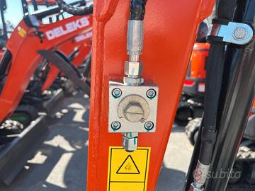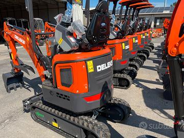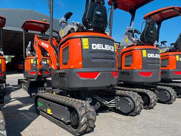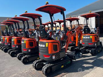 Miniescavatore DELEKS M120 - peso 12 Qli - Motore 3 cilindri Yanmar 3TNV70-SSY, Girosagoma, Leve dei comandi laterali, Carro allargabile, Braccio orientabile, doppia velocità.Motore diesel Yanmar 3TNV70-SSY - 3 cilindri - che eroga una potenza di 19 cv (14.2 Kw) Sistema idraulico a doppia pompa idraulica ad ingranaggi Benna da 40 cm Impianto idraulico ausiliario sul braccio Coppia luci di lavoro frontali + terzo faro sul braccio Precisione dei comandi Girosagoma Carro allargabile 850- mm, una larghezza ridotta che offre maggiore manovrabilità e accesso a spazi ristretti. Allargato misura 1100 mm.ò Braccio orientabile L'oscillazione del braccio permette operazioni di scavo vicino ai muri di casa senza muovere la macchina. Tubi idraulici I tubi idraulici garantiscono tenuta e flessibilità per anni. Roll-bar pieghevole Il roll-bar pieghevole rende l'unità più compatta per agevolarne il trasporto. Tettuccio Gli escavatori compatti DELEKS sono equipaggiati con un tettuccio che assicura all'operatore una vi Prezzo Iva esclusa, ritiro in sede.