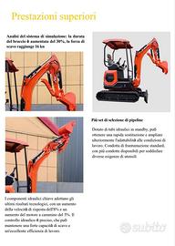 Miniescavatore di altissima qualità OKW 18 Pro, nuovo, con potenti capacità di scavo e prestazioni operative più flessibili, può completare più facilmente lavori da piccoli ambienti a grandi cantieri. Braccio oscillante, tubi idraulici per sostituire più velocemente gli accessori. Motore 3 cilindri. Facile accesso a filtro aria e separatore dell'acqua e dell'olio per manutenzione.