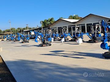 Miniescavatore nuovo Rippa R15, 15 quintali, super accessoriato anche di pinza mordente, girosagoma, comandi laterali servoassistiti, motore Kubota originale, doppia velocità, carro variabile, brandegio laterale del braccio, prese idrauliche sul braccio con più funzioni per martello pneumatico, trincia, ecc., in più piastra con sgancio rapido per i vari accessori, arco di protezione a tetto con faretti di lavoro, riduttori nelle ruote motrici.