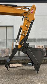 oscillante, due modalità di marcia, estensione/retrazione dei cingoli, cingoli in acciaio, pompa a pistoni, attacco rapido idraulico + pinza idraulica a pollice.