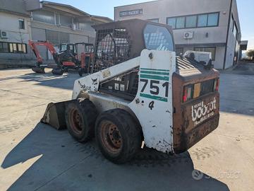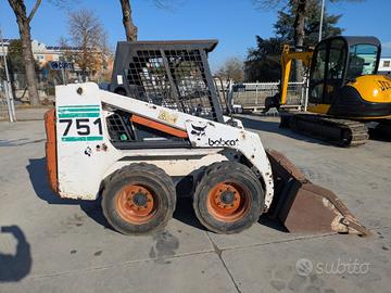 Minipala gommata marca BOBCAT modello 751, anno 1999, ore 3600 circa, impianto ausiliari, sgancio rapido, benna carico, forche pallet, targa e libretto, certificato CE, manuale uso manutenzione. Macchina in buono stato generale
