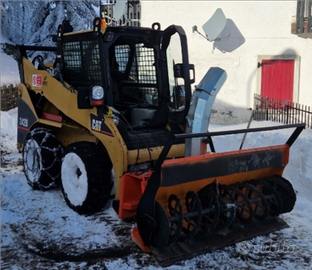 Vendo minipala cat 242b, perfetta in ogni sua parte, vernice originale, mai riverniciata come si può vedere dalle foto, allestita per sgombero neve con lama neve cangini da 2.10, praticamente nuova, turbina fresa neve cerruti doppio stadio da 1.60, usata 2 volte, catene neve, forche, impastatrice calcestruzzo sima da 250, ore 1670 originali, cabina chiusa con riscaldamento, pronta all'utilizzo. Vendo, no perditempo o sognatori. Grazie