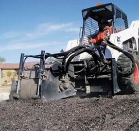 Completa di benna, fresa da 60, scopa, e ruota di scorta.