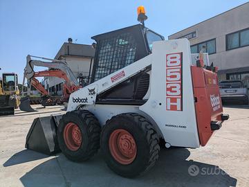 Minipala gommata BOBCAT tipo 853H, ore 3500, benna carico, forche pallet, impianto high flow, targa e libretto circolazione stradale, manuale uso manutenzione, CE. Buono stato generale. Disponibili a parte i seguenti accessori: fresa asfalto BOBCAT cm 40 con traslatore idraulico, lama angolabile idraulica mm 2100.