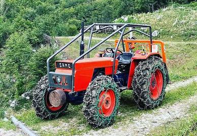 Vendo trattore Same minitauro 60 dt in ottimo stato, pronto all'uso. Il trattore ha un equipaggiamento forestale con verricello fisso, scudo idraulico, roll bar forestale a gabbia, 300 kg di zavorre anteriori, 4 catene forestali veriga, pneumatici al 90 %.
