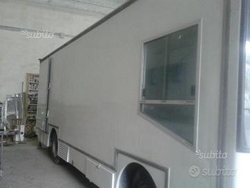 Parete estraibile idraulica , vano bombole, lavello e boiler, mobile base con piano inox, rivestimento parete, scaffali, decorazioni, cappe, cella parte superiore , impianto elettrico 220/24 Volt ecc. completo di generatore di corrente a benzina,