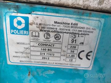 Vendiamo molazza Polieri 160 BG del 2012 È funzionante ma da sostituire gruppo pulsantiera per mettere in moto Demolizione ecologica Via Annunziata 87 83020 Forino(Av) P.iva Mostra numero Facebook gruppo mandile Agostino Mostra numero