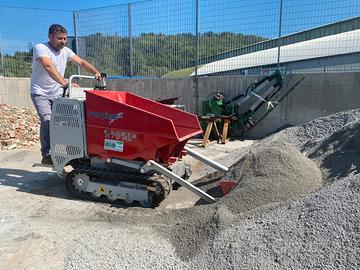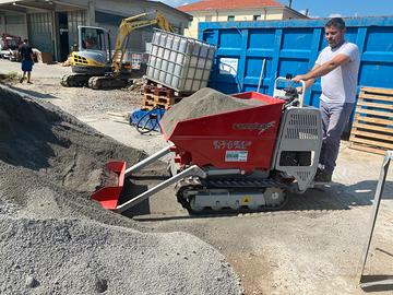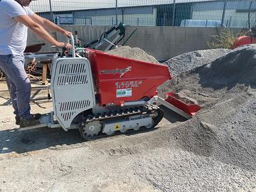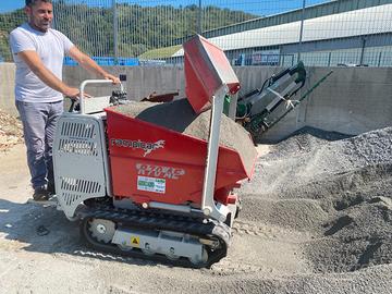 Motocarriola Cingolata Rotair Rampicar R 70 AE per Carico Inerti Laterizi Bitume Sabbia ecc. - Cassone Dumper & Pala Autocaricante - Con Contrappeso Anteriore Kg 50 - Portata Utile Kg 800 - Kg 900 a Colmo - Ribaltamento Idraulico - Trasmissione Totalmente Idrostatica - Comando con Joystick Servoassistito Ultrasensibile con Sistema Proporzionale - Avanzamento di Precisione 0,01 Km/h - Motore Honda GX 390 Euro 5 Hp 14 - Avviamento Elettrico & a Strappo - Freno Stazionamento - Larghezza cm 78 x Lunghezza cm 141 x Altezza cm 124 - Peso Kg 395 - Opzione Accessori: Lama Neve, Forche Pallet, Forche Pinza Universale, Benna Anteriore Carico Martello da Braccio 50 Kg, Trivella Terra, Verricello, Spaccalegna, Turbina Neve, Martello Idraulico Manuale, Miniescavatore, Betoniera Autocaricante - Totalmente Made in Italy - Possibilità Installazione Kit Industria 4.0 per Accedere alle Agevolazioni Recupero Credito di Imposta sui Contributi del 40% o 85% - Richiedi Tranquillamente il Tuo Preventivo - Possibilità Finanziamento Intero Importo Fino a 40.000 Euro in Tutta Italia con Durata Massima 84 Mesi e Delibera in Giornata (Interamente Online) - Super Offertissima in Pronta Consegna - Gli Specialisti di Motocarriole N. 1 in Europa !!!