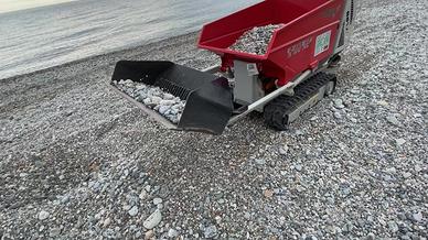 Motocarriola Cingolata Rotair Rampicar R 100 AE con Benna Grigliata per Manutenzione Spiagge - Completa di Benna Grigliata Larghezza cm 90 - Ideale per Pulizia e Setacciamento Spiagge Sabbiose - Perfetta per Livellamento e Spianamento Dune e Dossi Sabbiosi/Ghiaiosi Creati dalle Maree - Motore Honda GX 390 - Cassone Dumper - Portata Utile Kg 1.000 - Kg 1.200 a Colmo - Ribaltamento Idraulico - Trasmissione Totalmente Idrostatica con MotoRiduttori AutoFrenanti - Comando con Joystick Servoassistito Ultrasensibile con Sistema Proporzionale - Avanzamento di Precisione 0,01 Km/h - Precisione di Lavoro Ideale per Pulizia & Manutenzione Stabilimenti Balneari & Spiagge - Motore Honda GX 390 Euro 5 Hp 14 - Avviamento Elettrico - Freno Stazionamento - Larghezza cm 80 x Lunghezza cm 147 x Altezza cm 124 - Peso Kg 570 - Totalmente Made in Italy - Possibilità Installazione Kit Industria 4.0 per Accedere alle Agevolazioni Recupero Credito di Imposta sui Contributi del 20% o 65% - Richiedi Tranquillamente il Tuo Preventivo - Possibilità Finanziamento Intero Importo Fino a 50.000 Euro in Tutta Italia con Durata Massima 120 Mesi e Delibera in Giornata (Interamente Online) - Super Offertissima in Pronta Consegna - Gli Specialisti di Motocarriole N. 1 in Europa !!!