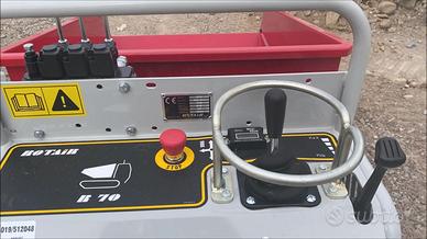 Motocarriola Cingolata Rotair Rampicar R 70 AE con Benna Dentata per Movimento Terra - Novità Assoluta - Con Contrappeso Anteriore Maggiorato Kg 70 - Cassone Dumper & Pala Autocaricante a 5 Denti per Scavo, Livellamento & Spianamento Terreni - Portata Utile Kg 800 - Kg 900 a Colmo - Ribaltamento Idraulico - Trasmissione Totalmente Idrostatica - Comando con Joystick Servoassistito Ultrasensibile con Sistema Proporzionale - Avanzamento di Precisione 0,01 Km/h - Motore Honda GX 390 Euro 5 Hp 14 - Avviamento Elettrico & a Strappo - Freno Stazionamento - Larghezza cm 78 x Lunghezza cm 141 x Altezza cm 124 - Peso Kg 395 - Opzione Accessori: Lama Neve, Forche Pallet, Forche Pinza Universale, Benna Anteriore Carico, Martello da Braccio 50 Kg, Trivella Terra, Verricello, Spaccalegna, Turbina Neve, Martello Idraulico Manuale, Miniescavatore, Betoniera Autocaricante - Totalmente Made in Italy - Possibilità Installazione Kit Industria 4.0 per Accedere alle Agevolazioni Recupero Credito di Imposta sui Contributi del 40% o 85% - Richiedi Tranquillamente il Tuo Preventivo - Possibilità Finanziamento Intero Importo Fino a 40.000 Euro in Tutta Italia con Durata Massima 84 Mesi e Delibera in Giornata (Interamente Online) - Super Offertissima in Pronta Consegna - Gli Specialisti di Motocarriole N. 1 in Europa !!!