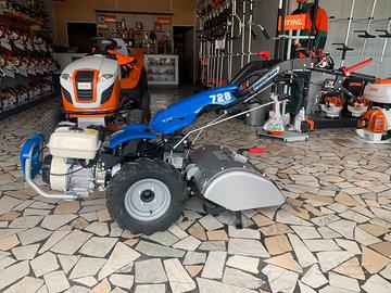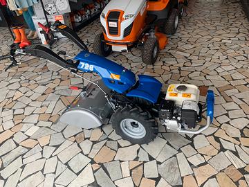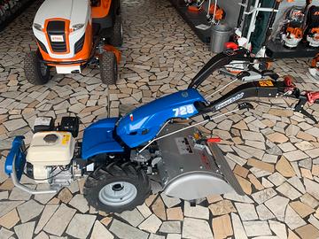 Motocoltivatore motozappa BCS 728 con Powersafe motore HONDA BENZINA 6 CAVALLI con cambio con 3 marce avanti - 3 retromarce FRESA 46 cm e invertitore rapido del senso di marcia, questo gli consente di operare con un'ampia gamma di rapporti adattandosi a diverse tipologie di impiego. Il differenziale con bloccaggio è di serie. Il piantone di guida è regolabile e reversibile per l'impiego di attrezzature anteriori e posteriori.