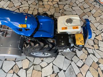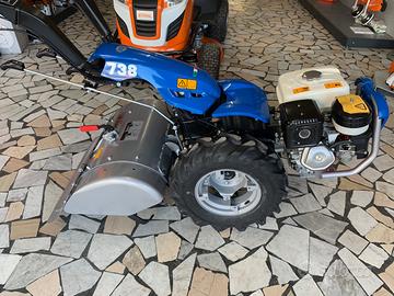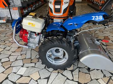 Motocoltivatore motozappa BCS 738 con Powersafe motore HONDA GX270 BENZINA 9 CAVALLI con cambio con 3 marce avanti - 3 retromarce e invertitore rapido del senso di marcia, questo gli consente di operare con un'ampia gamma di rapporti adattandosi a diverse tipologie di impiego. Il differenziale con bloccaggio è di serie. Il piantone di guida è regolabile e reversibile per l'impiego di attrezzature anteriori e posteriori. I freni a tamburo sono con comando indipendente sulle due ruote. FRESA 66 cm registrabile Con ruote 5.0-10 MACCHINA NUOVA DA FATTURARE CON GARANZIA Concessionaria Ufficiale Pasquali ( BCS )