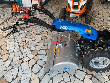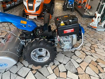 Motocoltivatore motozappa BCS 740 con avviamento elettrico adotta un cambio con 3 marce avanti - 3 retromarce e invertitore rapido del senso di marcia, questo gli consente di operare con un'ampia gamma di rapporti adattandosi a diverse tipologie di impiego. Il differenziale con bloccaggio è di serie. Il piantone di guida è regolabile e reversibile per l'impiego di attrezzature anteriori e posteriori. I freni a tamburo sono con comando indipendente sulle due ruote. MOTORE YANMAR LN100 con avviamento elettrico FRESA 80 cm registrabile Con ruote 5.0-10 MACCHINA NUOVA DA FATTURARE CON GARANZIA Concessionaria Ufficiale Pasquali ( BCS ) PREZZO IVA COMRESA