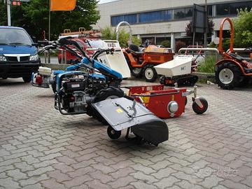 Motocoltivatore Bertolini 413 S Nuovo Modello - Completo di Trincia Zanon TSM 600 - Larghezza Lavoro cm 60 - 36 Flagelli - Rullo Regolazione Altezza - Ruotini Direzionali - Equilibratura Elettronica Rullo - Attacco Rapido - Versione Frontale o al posto della Fresa - Motore Lombardini Kohler Benzina CH 395 OHV - Fresa Terra cm 70 Regolabile in Larghezza in 4 Posizioni Tipo Pesante con Regolazione di Profondità - Con Contrappeso - Avviamento a Strappo Autoavvolgente - Cambio a 6 Velocità - 3 Av + 3 Rm con Invertitore rapido a Leva di Comando Manubrio - Differenziale con Bloccaggio Inseribile & Disinseribile - Freni Indipendenti sulle Ruote - Ruote Gomma 5.0-10 Disco Registrabile per Regolazione Larghezza Carreggiata con Allarghe - Manubrio Regolabile 180° e in Altezza con Dispositivo Antivibrante - Gancio di Traino Dispositivi di Sicurezza - Opzionali Scavapatate, Assolcatore, Erpice, Barra Falciante, Turbina Spazzaneve, Lama a Ruspa cm 100 Frontale, Spazzolatrice