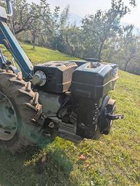 Motocoltivatore con accessori: fresa, barra falciante, assolcatore.