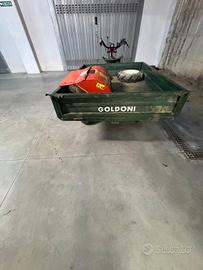 Vendo motocoltivatore goldoni 3+3 a benzina. Come si vede in foto è composto da: fresa, carrello, gomme gommate, cerchi in ferro. È tempo che è fermo ma è stato messo giù funzionante. Il prezzo è leggermente trattabile. Ritiro a carico dell'acquirente