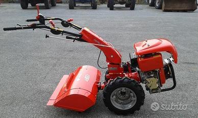 La macchina ha motore Fort F70D diesel da 296cc e 6,7 Hp di potenza, con avviamento a strappo con autoavvolgente e ruote in gomma da 4.00 x 10" con mozzo. Dispone di cambio a 3 velocità in avanti e 3 in retromarcia ad ingranaggi in bagno d'olio, frizione multidisco a secco, presa di forza frontale indipendente, attacco rapido attrezzi, stegole di guida registrabili e reversibili, dispositivo di sicurezza antinfortunistico, cofano motore. Accessoriata con gruppo fresa riducibile da 70 cm. Visibile presso la nostra sede di Cairo Montenotte. Per info, contatti diretti : oppure Tel: