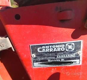 Vendo per inutilizzo motocoltivatore Antonio Carraro ( CARRARINO ). Motore Lombardini diesel 14 CV - 3 LD 511 avviamento a corda, motore rifatto a nuovo, ( messa in moto al primo tiro di cordicella ),fresa e zappette nuove. Marce lente e veloci. La macchina è in buone condizioni quasi nuovo. Per ulteriori informazioni non esitate a contattarmi al cell. 3299755512 . Contattare solo se realmente interessati NO PERDITEMPO. GIOVANNI