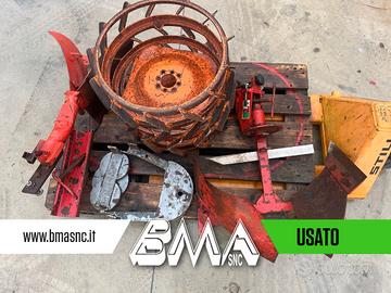 Il motocoltivatore viene venduto completo di una serie di accessori: aratro bivomere, ruote in ferro, zavorra anteriore e assolcatore posteriore.