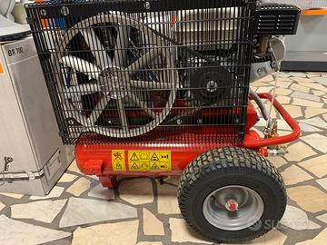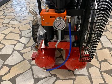 Compressore da 500 litri al minuti 9-11 bar possibilità di collegare 3-4 forbici 2-3 pettini per olive. Capacità serbatoio 11 + 11 (doppio serbatoio)