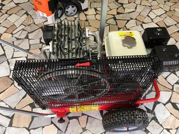 Compressore da 600 litri al minuti 9-11 bar possibilità di collegare 5 forbici 3 pettini per olive. Capacità serbatoio 11 + 11 (doppio serbatoio)
