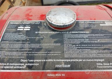 Vendo motopompa carrellata Rosenbauer, modello Automatic 75/120 VWG. Un pezzo meccanico di altissima qualità, ideale per collezionisti, esposizione o per uso agricolo/emergenza Usata pochissimo appena 24 ore di lavoro La pompa e’ anche scarrelabile Costruttore: Motore VW, Pompa Rosenbauer. • Modello: Automatic 75 VWG - 120 VWG (Portata nominale indicativa di 1200 l/min a 10 bar). • Motore: Volkswagen industriale raffreddato ad aria, con avviamento a strappo d'emergenza e pannello comandi completo di chiave di accensione, spie e pulsanti "START" e "STOP". • Pannello di Controllo: Ben conservato, con manometri di pressione, vacuometro per l'aspirazione e contaore. Le istruzioni originali in italiano sono chiaramente leggibili sul serbatoio. • Carrello: Verniciatura rossa d'epoca con segni del tempo, completo di serbatoio carburante superiore con tappo metallico, proiettore orientabile di profondità anteriore e griglia posteriore con logo Rosenbauer "R" . • Stato di Conservazione: L'articolo si presenta in condizioni originali "visto e piaciuto". La vernice è sbiadita in alcuni punti e presenta la patina tipica dell'uso e dello stoccaggio all'aperto. Non sono state rilevate ammaccature significative. Il motore e la pompa sono completi, con tutte le tubazioni e i raccordi flangiati principali al loro posto.