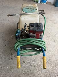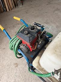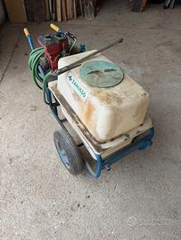 Motopompa irroratrice carrellata Zanusso modello Bigo AG Spray. Funzionante e buone condizioni. Ideale per trattamenti antiparassitari e diserbo in orti, frutteti e oliveti di medie dimensioni. È dotata di un serbatoio 100L, un motore a scoppio, pompa a membrana, tubo ad alta pressione e lancia per l'applicazione.