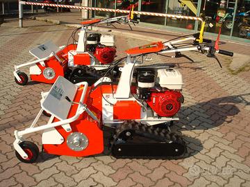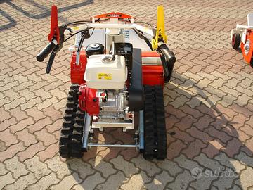 Mototrincia Cingolata Tekna TTC 80 - Motore Honda GX 390 - 4 Tempi Benzina 400 cc 14 Hp - Super Professionale - Interamente Costruita in ITALIA - Cambio 3 AV + 1 RM - Larghezza Taglio cm 80 - Gruppo Taglio con Rotore a 46 Flagelli - Altezza Taglio 20-85 mm - Freno di Sicurezza Arresto Rotore UNI EN 12733 - Freno Sicurezza Automatico a Ganasce - Frizioni di Sterzo Indipendenti a Bagno d'Olio Rinforzate Per la Massima Precisione di Manovra - Manubrio Regolabile a 4 posizioni Verticali e 5 Laterali - Dimensioni 186x103x104 cm - Peso 230 Kg - Carro Cingolato con Doppio Rullo Posteriore con Massima Stabilità in Pendenza (Unico sul Mercato!) - Disponibili Versione Gommata e/o con Larghezza Taglio cm 65 - Il Trinciatutto trinciasarmenti Tekna TTC 80 è una macchina ad uso professionale adatta per operazioni di pulizia in tutte quelle condizioni di difficile accesso alle normali macchine falciatrici e/o trattori, in terreni incolti, nel sottobosco, nei terreni in contropendenza e/o terrazzamenti, per la pulizia di terreni ospitanti impianti fotovoltaici - E' una macchina robusta, con una larghezza utile di taglio di 80 cm e ben 46 Flagelli a Y per sminuzzare al meglio erba, rovi e sterpaglie - Il Trinciatutto Trinciasarmenti TT 80 è equipaggiato con cingoli in gomma di larghezza 150 mm con impronta a terra di ben 400 mm, per avere massima trazione e stabilità sia in forte pendenza che in situazioni di terreno fangoso e/o sabbioso - Dotata di trasmissione meccanica con un robusto riduttore ad ingranaggi in bagno d'olio a 3+1RM velocità, con blocco differenziale interno per avere le due ruote motrici sempre in trazione e di un potente motore da 14 HP- Richiedi Tranquillamente il Tuo Preventivo - Possibilità Finanziamento Intero Importo in Tutta Italia fino a 84 Mesi con Delibera in Giornata (Interamente Online) - Super Offertissima in Pronta Consegna -