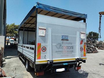Motrice Iveco Eurocargo 75E18 E5 dotato di cassone centinato con sponda caricatrice idraulica posteriore.