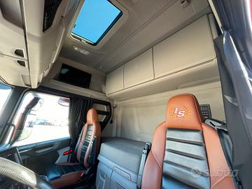 R 450, cabina H colore rosso, sosp. Pneumatiche integrali , passo 4.750, clima integrato, attrezzatura per casse mobili km. 702.851 sostituita la turbina