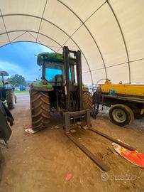 Muletto ex industriale, alzata 4 metri, perfettamente funzionante, azionamento tramite distributori del trattore, forche regolabili idraulicamente