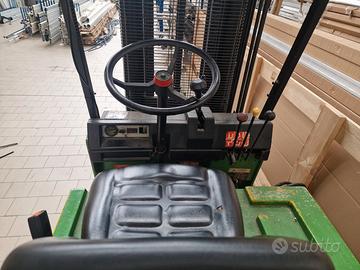 Vendiamo carrello elevatore CESAB con portata massima 12 quintali, ideale per uso in magazzino e ambienti interni.