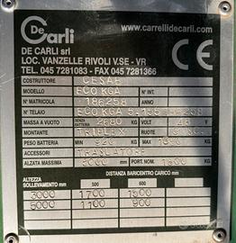Muletto CESAB ECO KGA – Carrello Elevatore Elettrico – Pronto all’Uso Vendo muletto Cesab ECO KGA in buone condizioni, completamente funzionante e ideale per magazzino, logistica e uso industriale. ✔ Macchina affidabile e robusta ✔ Maneggevole anche in spazi ridotti ✔ Manutenzione regolare eseguita ✔ Subito operativo --- 🔧 Specifiche Tecniche - Marca/Modello: CESAB ECO KGA - Tipologia: Carrello elevatore elettrico - Portata nominale: 1.800 kg - Altezza massima di sollevamento: 5.000 mm - Tipo montante: Triplex - Alimentazione: Elettrica - Batteria: 48V - Caricabatterie trifase 380V: Incluso - Trasmissione: Automatica - Ore di lavoro: 6.200h - Stato gomme: 70% di usura - Forche: Standard regolabili - Sterzo: Posteriore - Raggio di sterzata: Ridotto (ideale per interni) - Peso macchina: circa 2.800 kg 📦 Condizioni - Perfettamente funzionante - Pronto all’uso - Normali segni di utilizzo - Sempre utilizzato in ambiente interno 💰 Prezzo: € 4.970+iva 📍 Ritiro a mano: Verona Sud ➡️ NON scambio – NO perditempo ➡️ Tutte le informazioni sono già presenti nell’annuncio Contatto tramite chiamata in orario ufficio o chat Subito, solo se realmente interessati