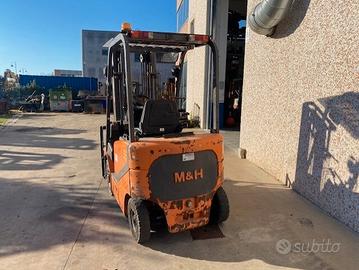 Carrello elevatore M&H CPD15J, funzionante in buone condizioni, ruote superelastiche, traslatore, elevazione std 3300mm, forche 1220 mm, carica batteria,