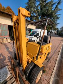 Muletto in buone condizioni, sollevatore a doppio sfilamento con traslatore laterale, tutte le ruote piene e anteriori gemellate