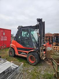 Muletto Linde H80D-02 80 quintali, cabina con Aria Condizionata e riscaldamento, Joistik, ruote gemellate, fanaleria completa, pinza anteriore idraulica Anno 2022 ottima per la carta o altro, montante libero ecc.