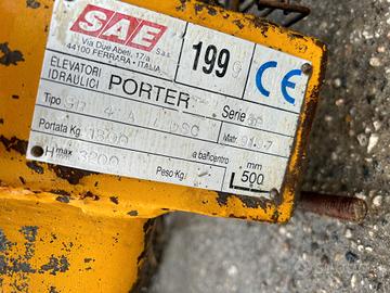 Muletto marca Porter modello SR4-A per trattore agricolo, duplex, anno 1999, CE, va attaccato ai distributori idraulici, ha il suo serbatoio dell'olio, altezza 3.20m, alza 13 quintali, con translatore e stringicasse
