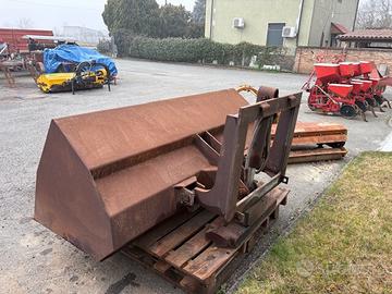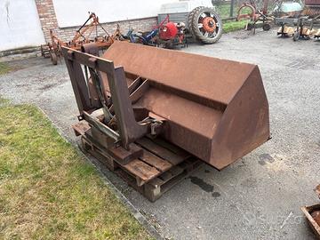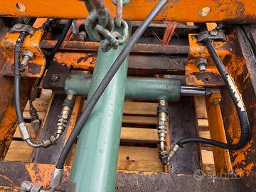 Muletto posteriore agricolo con traslatore, forche e pala per cereali da 200 cm intercambiabile con pistone di ribaltamento e usata pocchissime volte. Munito di terzo punto idraulico. Alzata circa 300 da aggiunger all'escursione del sollevamento del trattore. Si vende in blocco. Per informazioni